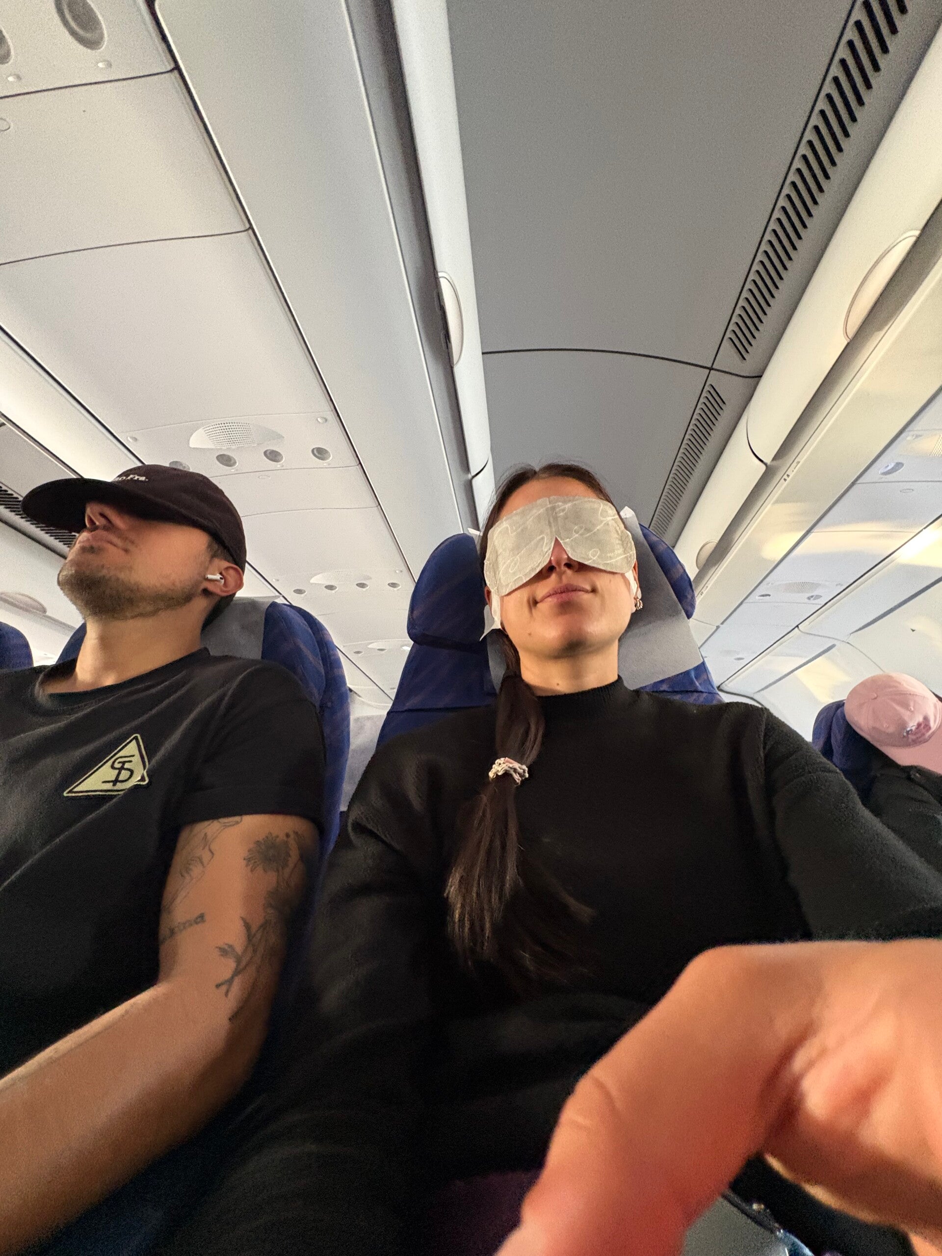 Falls ihr euch so fragt, was Kosi gerade so macht neben mir im Flugzeug - er schläft.