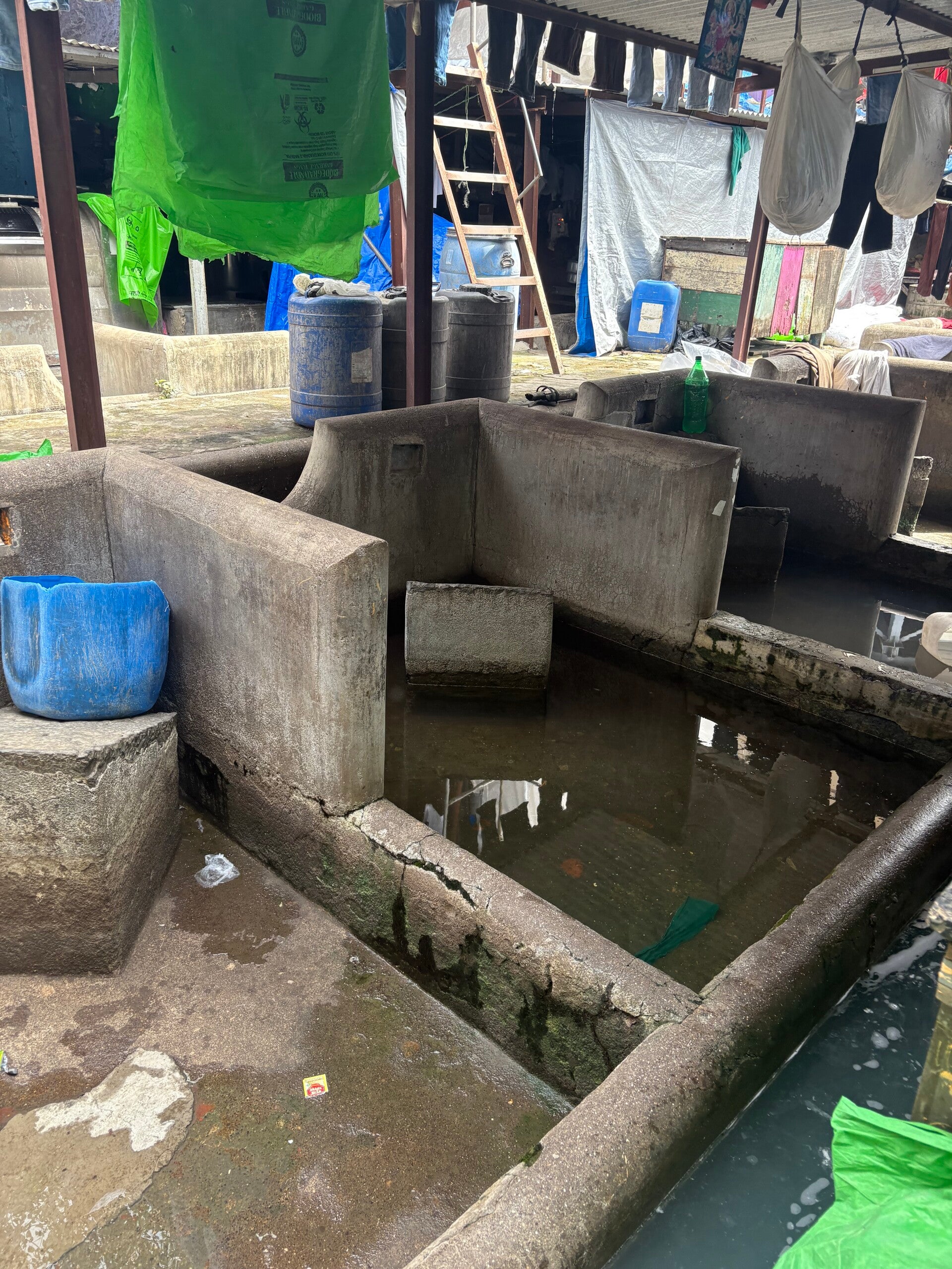 Viele Dhobi-Familien wohnen direkt vor Ort – etwa 200 Familien, die diesen Beruf über Generationen weitergeben. Manche schlafen zwischen den Waschplattformen – eine Mischung aus Arbeit, Wohnen, Leben – alles ineinander verschränkt.
