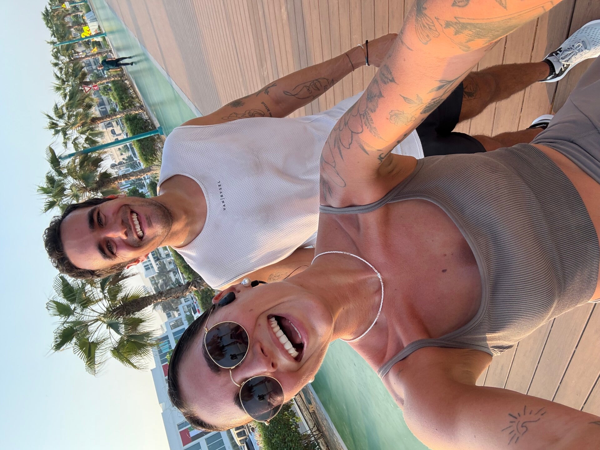 Nach einer guten halben Stunde beendete ich das Gespräch und wir rafften uns endlich auf. Unser Plan für den Morgen stand nämlich schon seit gestern fest: Wir wollten zum Jumeirah Beach, um dort zu laufen. Wir hatten am Vorabend noch gegoogelt, wo man in Dubai am besten joggen kann, und diese Strecke wurde überall hochgelobt – direkt am Meer, mit perfektem Boden und einem unvergleichlichen Blick. Also hieß es: raus aus den Federn, Laufsachen an, Wasserflasche eingepackt – und los!