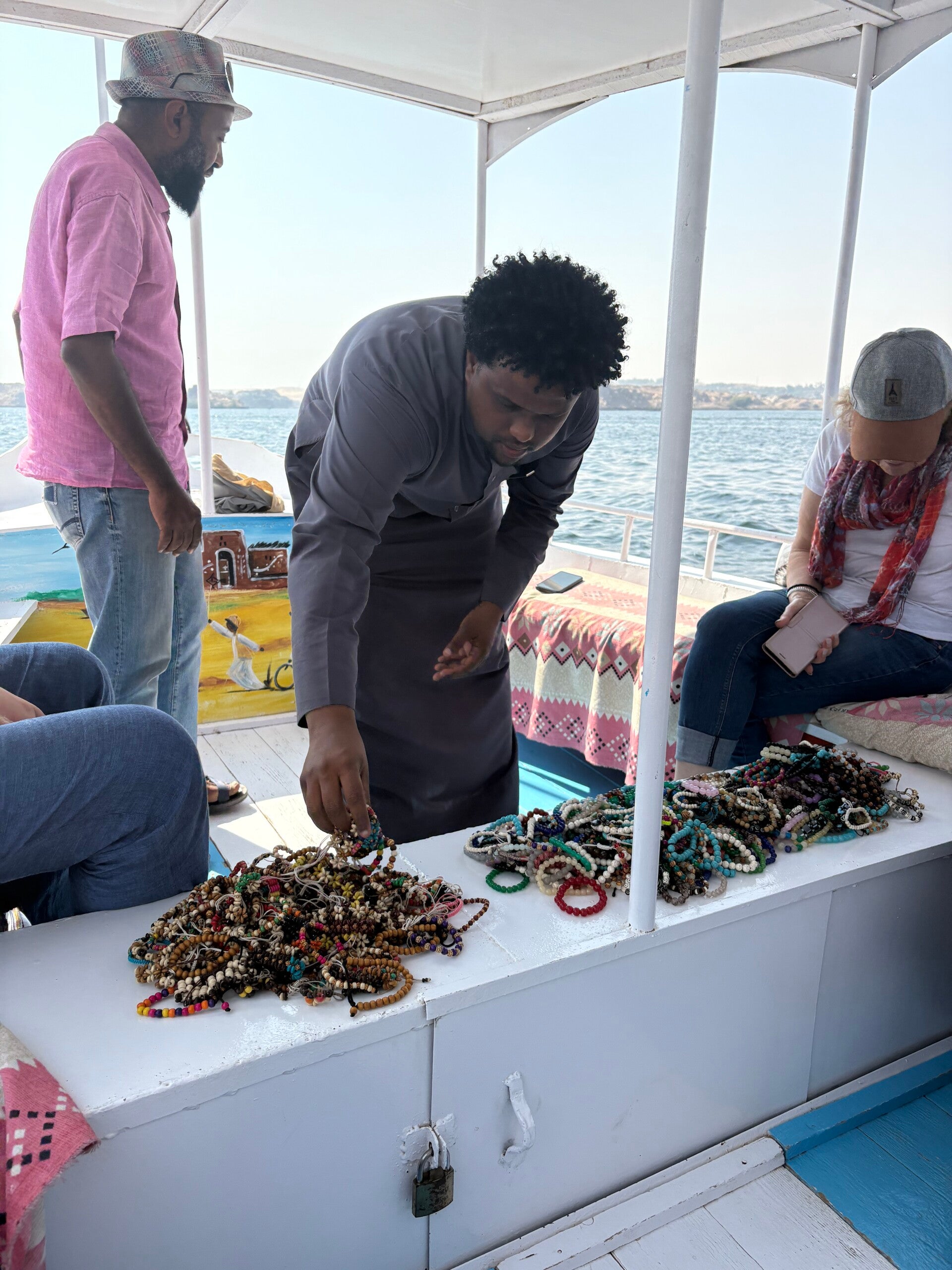 Von überall rannten gleich Leute her und wollten Schals, Shirts und Kleider verkaufen. Keiner von uns wollte jedoch was kaufen.